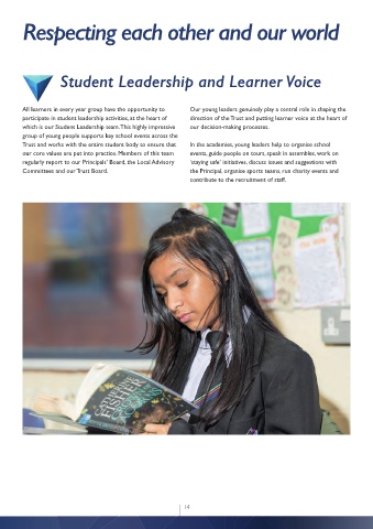 participate in student leadership activities, at the heart of direction of the Trust and putting learner voice at the heart of